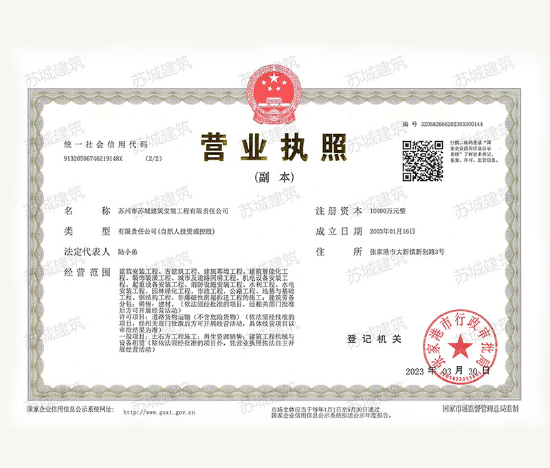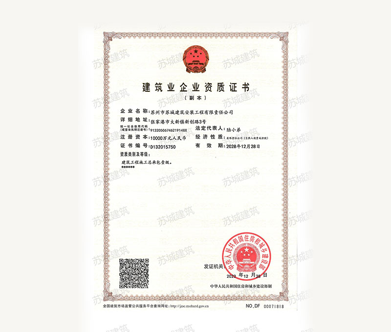 蘇州市蘇城建筑安裝工程有限責任公司是一家建筑業(yè)企業(yè),擁有房屋建筑施工總承包一級資質(zhì),